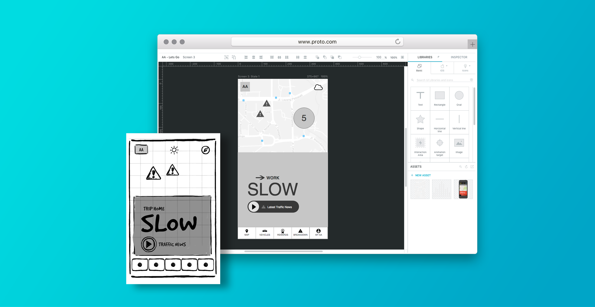 I chose Proto.io for the click through functions and Principle to communicate the app's interactions and transitions. The transitions in the app were chosen to strike a balance between reinforcing context and creating an engaging and compelling interface.