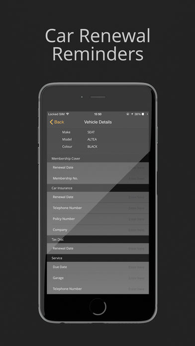Never miss those important dates such as MOT appointments or Tax and Insurance renewal dates